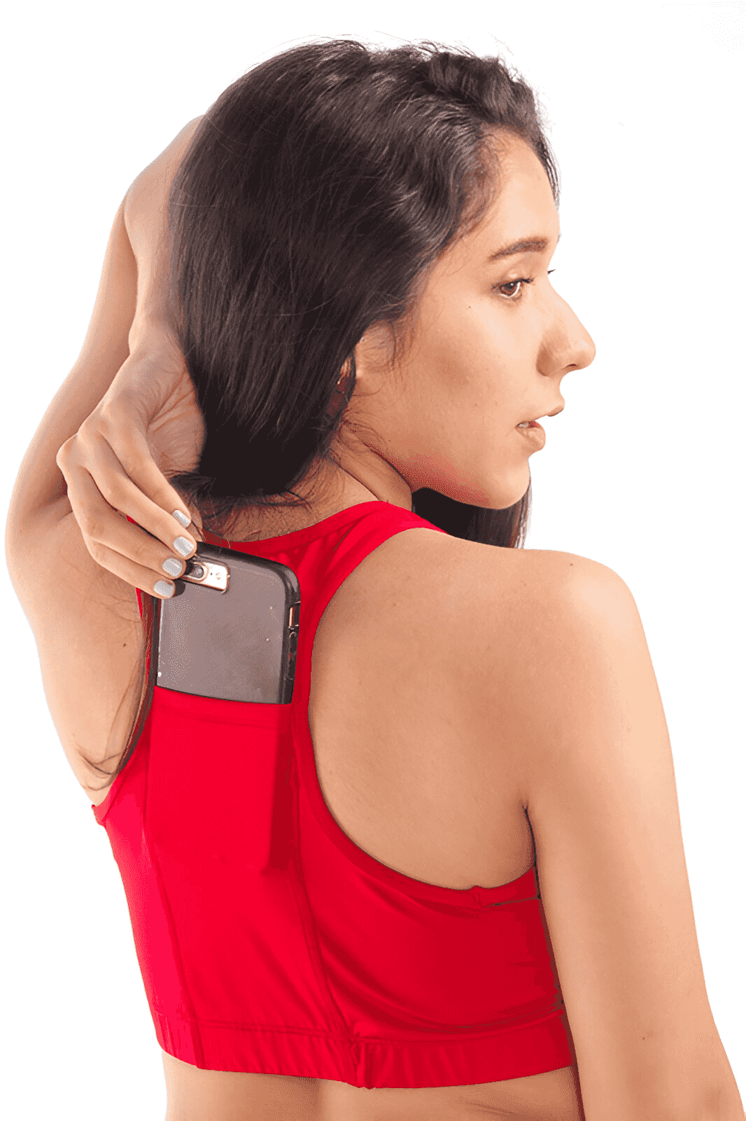 Comodidad y funcionalidad en un solo diseño. Este sport bra no solo ofrece soporte, sino que también incluye un práctico bolsillo trasero para llevar tus objetos personales mientras te ejercitas en el gym.